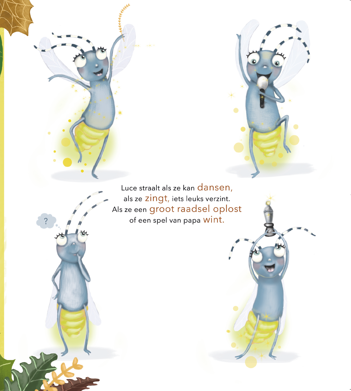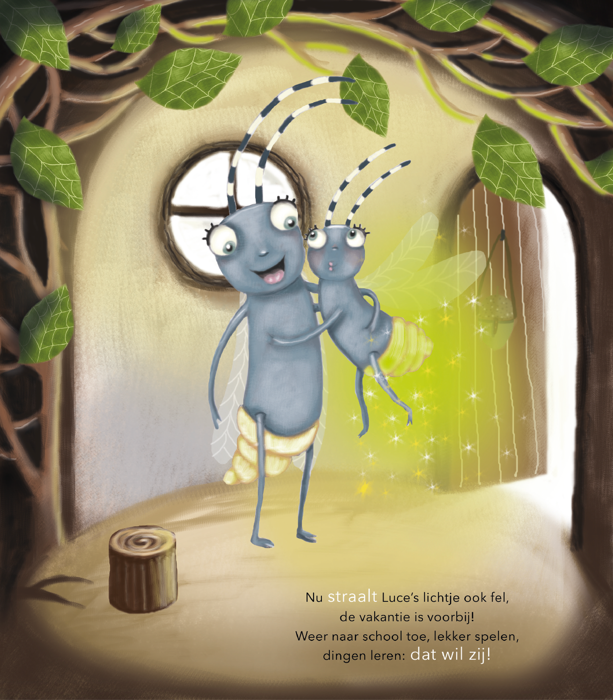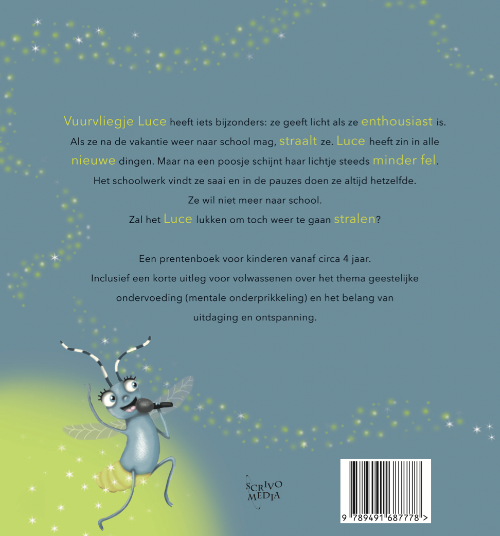 Vuurvliegje Luce heeft iets bijzonders: ze geeft licht als ze enthousiast is. Als ze na de vakantie weer naar school mag, straalt ze. Luce heeft zin in alle nieuwe dingen. Maar na een poosje schijnt haar lichtje steeds minder fel. Het schoolwerk vindt ze saai en in de pauzes doen ze altijd hetzelfde. ze wil niet meer naar school. Zal het Luce lukken om toch weer te gaan stralen?